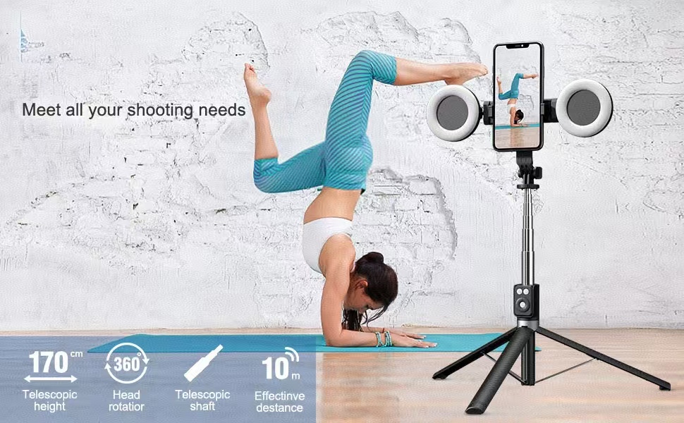 • BT12 Selfie Stick Tripod with Filling Light Stainless Steel Phone Selfie Stick bluetooth Remote Control Stable Three-Legged Support for Live Broadcasts Video Shooting