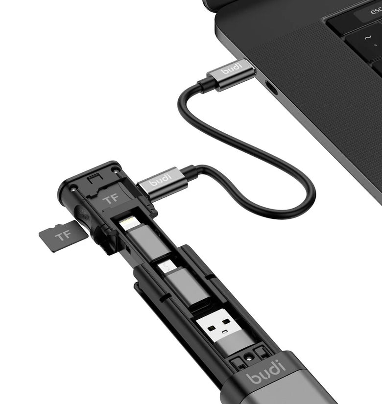 When there is no internet, no email access, how do you transfer a file to someone? budi Multi-functional Cable Stick can read TF memory cards and support both USB or Type C port.and at same time support 7 PCS TF card storage