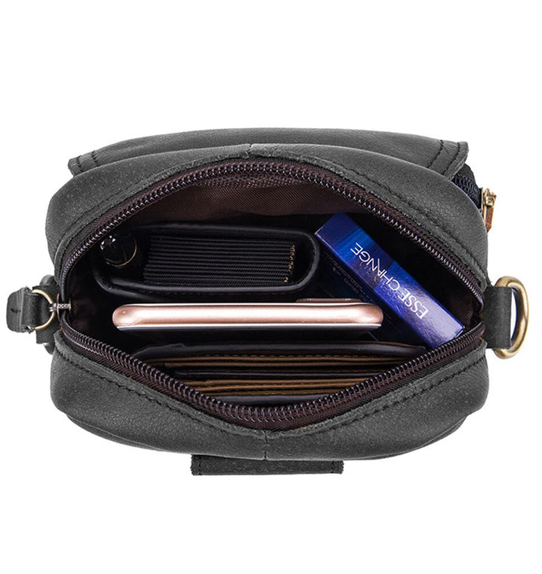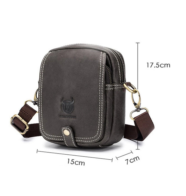 • BULLCAPTAIN Casual Sports Mini Genuine Leather Crossbody Bag Men Casual Functional Cowhide Pack Outdoor Hiking Shoulder Bag