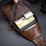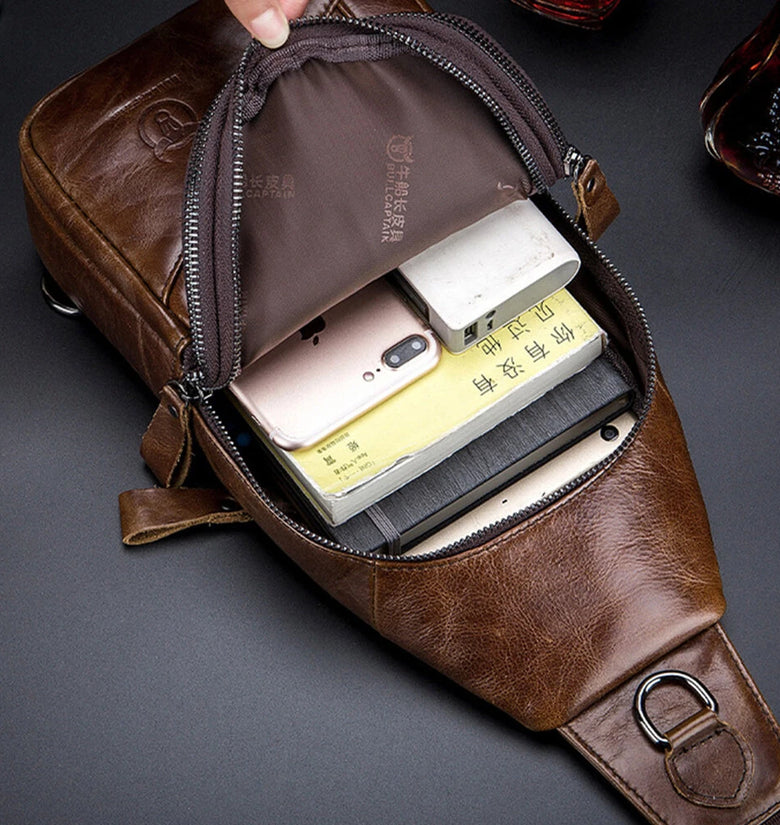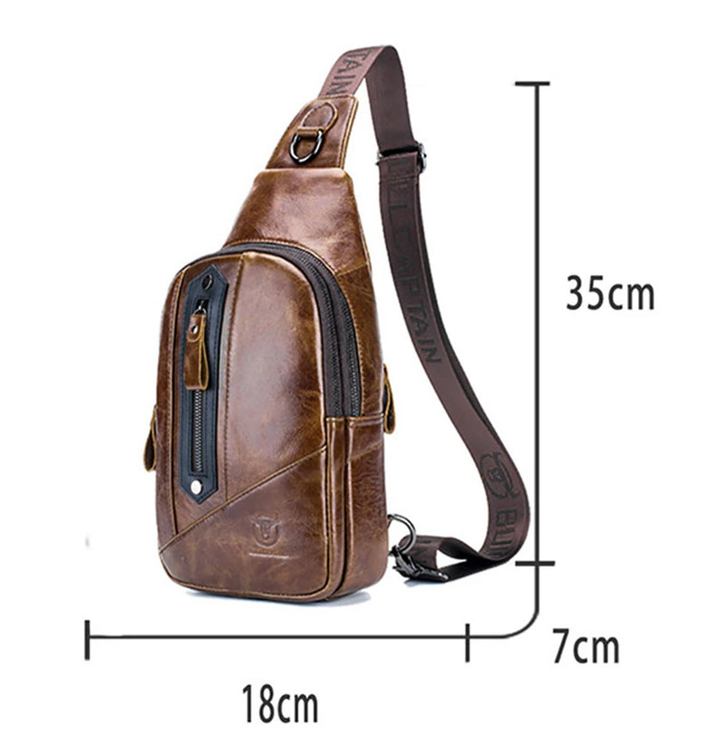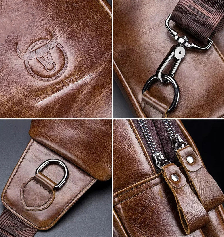 • BULLCAPTAIN Men Genuine Leather Chest Bag Multi-pockets Compartment Fashion Casual Shoulder Backpack for Travel