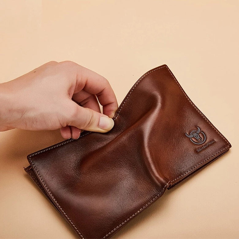 • BULLCAPTAIN Men's Genuine Leather RFID Wallet Handmade Cowhide Thin Design Large Capacity Short Coin Purse Clip Business Casual Card Bag Gift