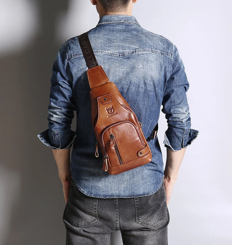 • BULLCAPTAIN Mens Genuine Leather USB Charging Large Capacity Business Casual Chest Bag Shoulder Crossbody Bag