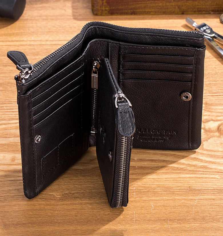 BULLCAPTAIN Men's Genuine Leather Wallet Detachable Coin Purse Large Capacity Multi-card Slots Card Holder Money Clip