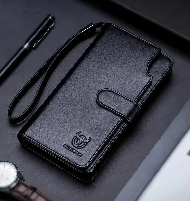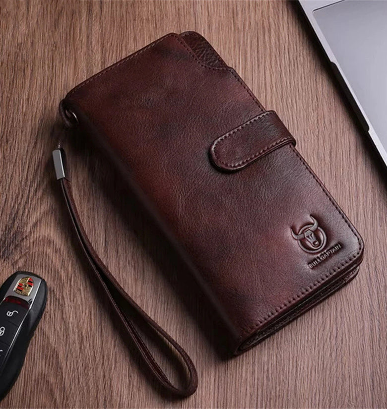 • BULLCAPTAIN Men's Genuine Leather Wallet RFID Function Can Place 6.5'' Mobile Handbag High Quality Multi Card Long Wallet