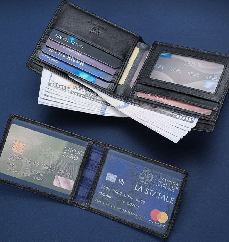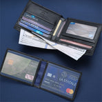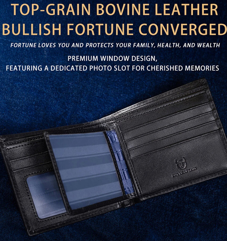 • BULLCAPTAIN Men's RFID Genuine Leather Billfold Wallet with Gift Box Business Casual Multi-Card Slot Card Holder Money Clip Gift for Boyfriend Father Husband Gift