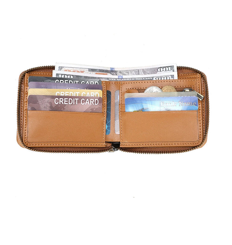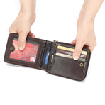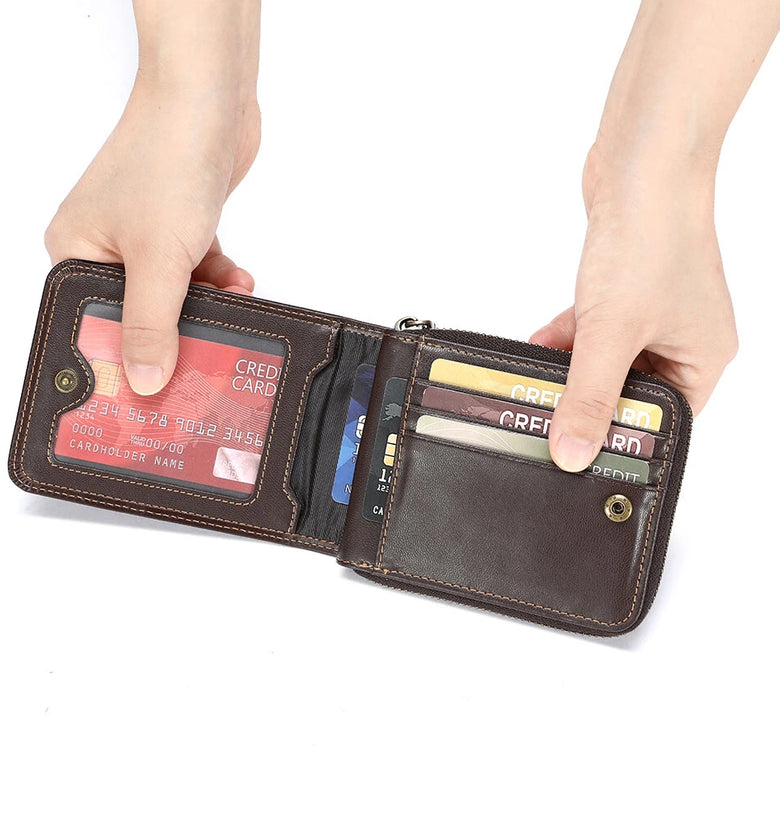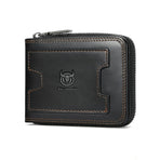 • BULLCAPTAIN Retro Solid Cowhide Leather Zipper Men's Wallet Two-fold Money Clip RFID Multi-card Credit Holder
