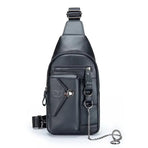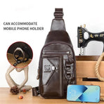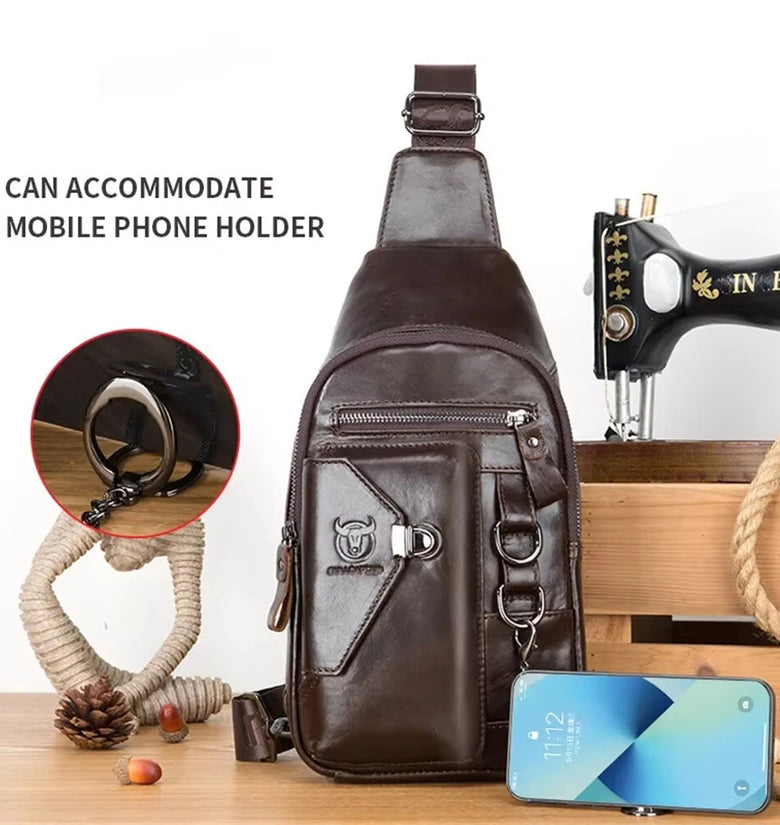 • BULLCAPTAINN Genuine Leather Men's Chest Bag with Phone Holder Multi-Layer Large Capacity Shoulder Pack Travel Outdoor Comfy Wide Strap Messenger Bag