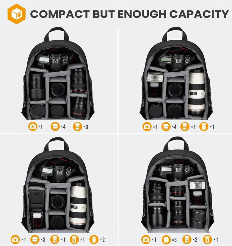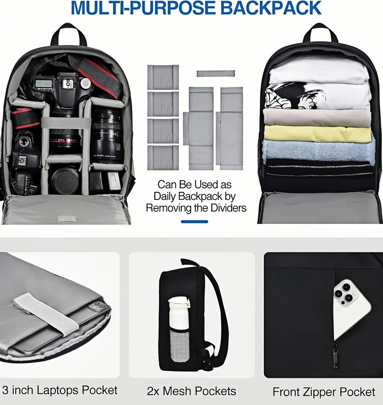 • Camera Backpack Bag with Waterproof Cover Multi-Compartment Design for Camera Accessories Laptop Tripod Strap Outdoor Photography Travel
