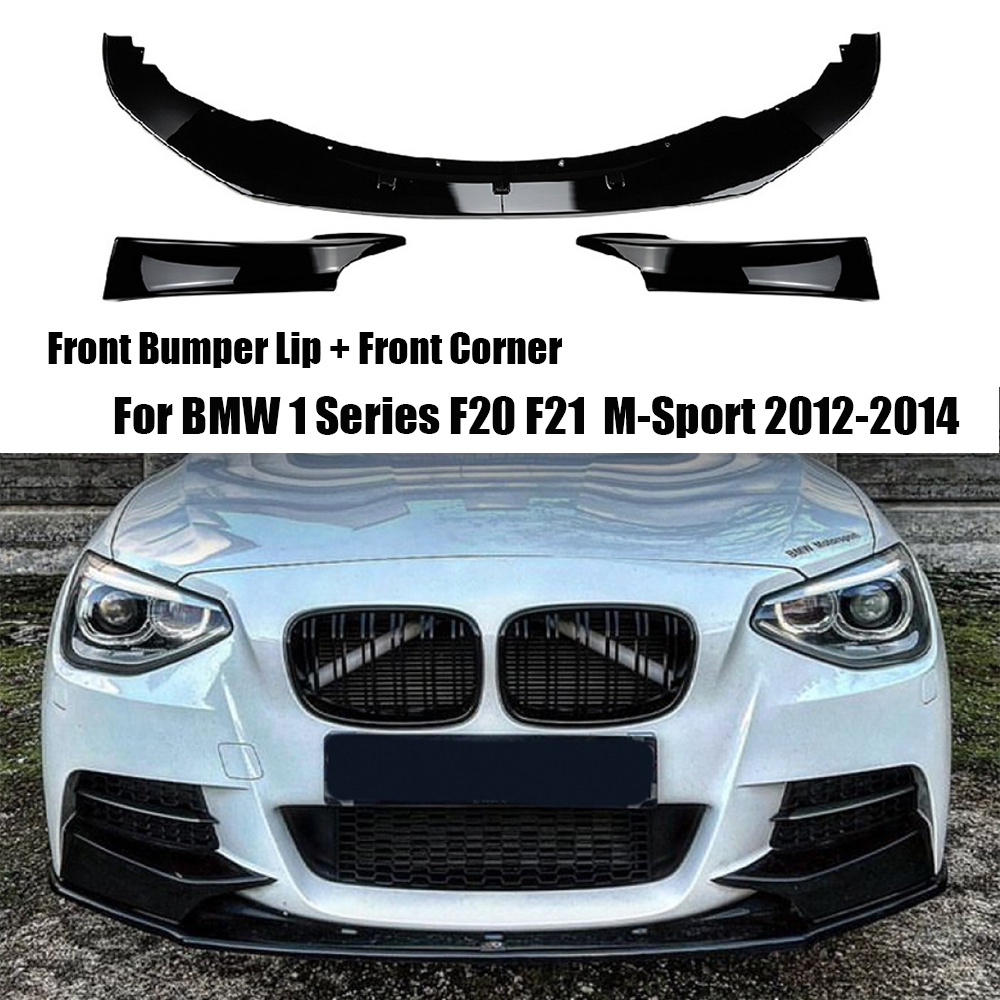 • Car Front Bumper Lip + Front Corner Spoiler Splitter Modification Kit Glossy Black for BMW 1 Series F20 F21 Early M-Sport 2012-2014