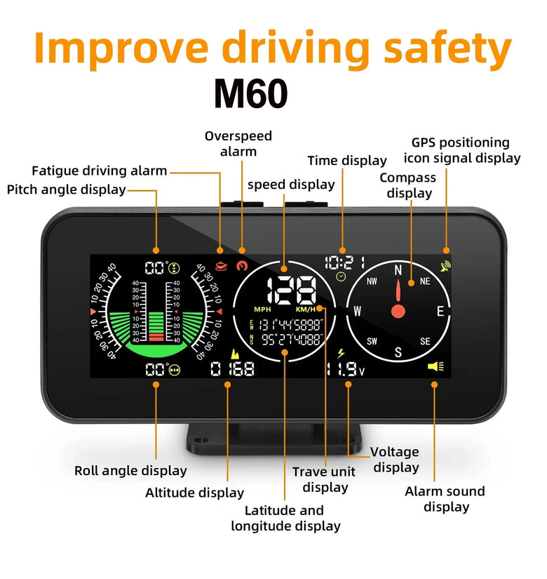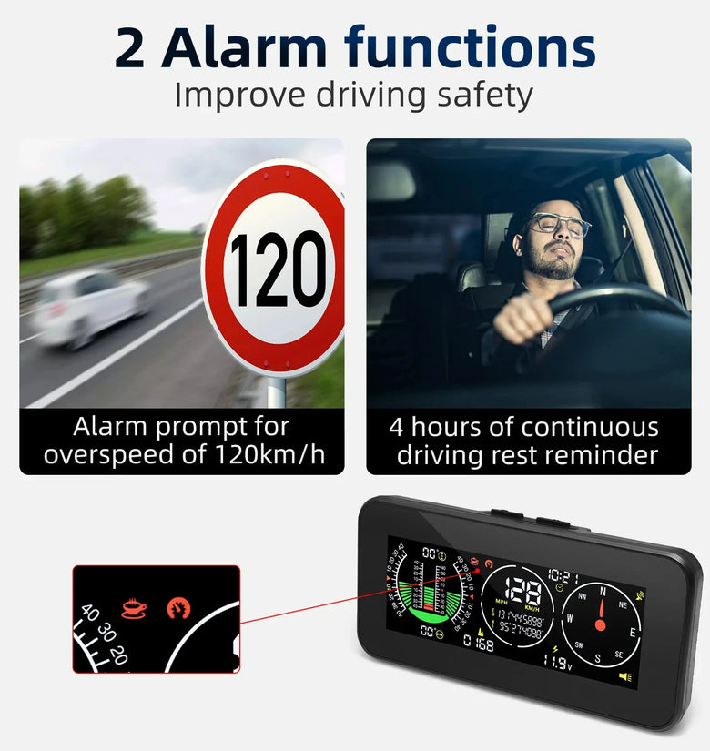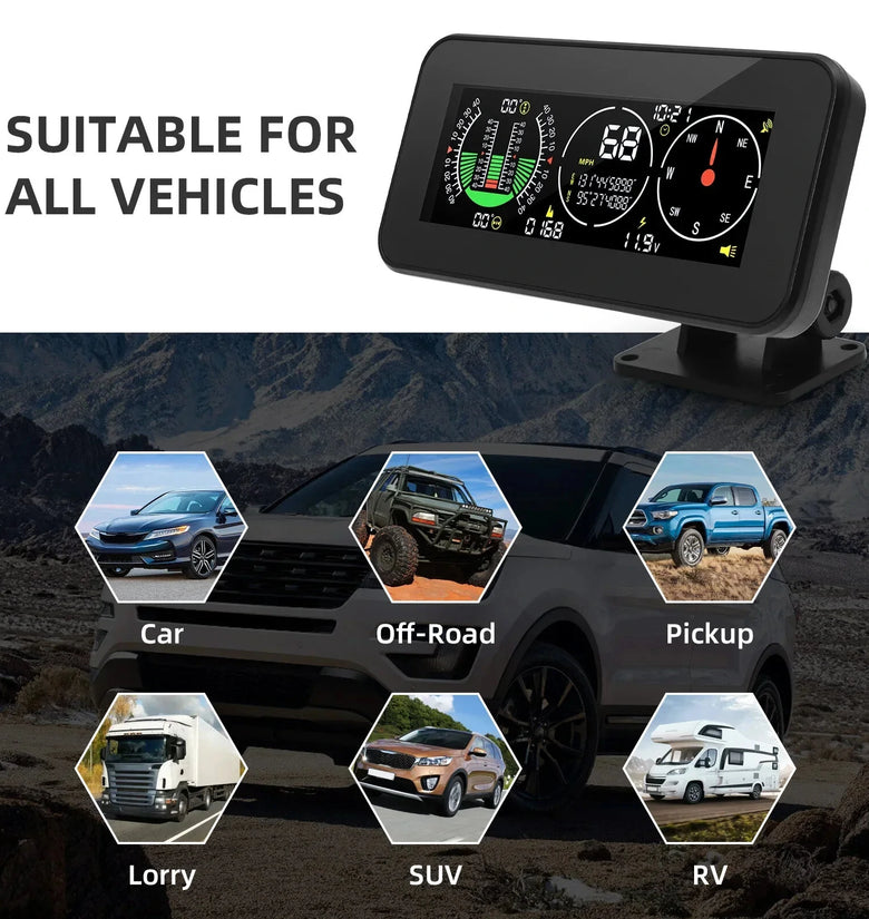 • Car Head Up Display Digital Speed Slope Meter Inclinometer With GPS Speedometer Compass Real Time Measurement