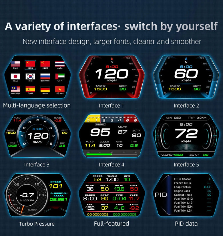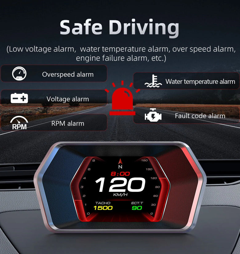 Car HUD Gauge Head Up Display OBD2 GPS Dual System On-board Computer Car Digital Speedometer Alarm