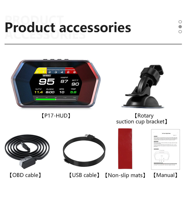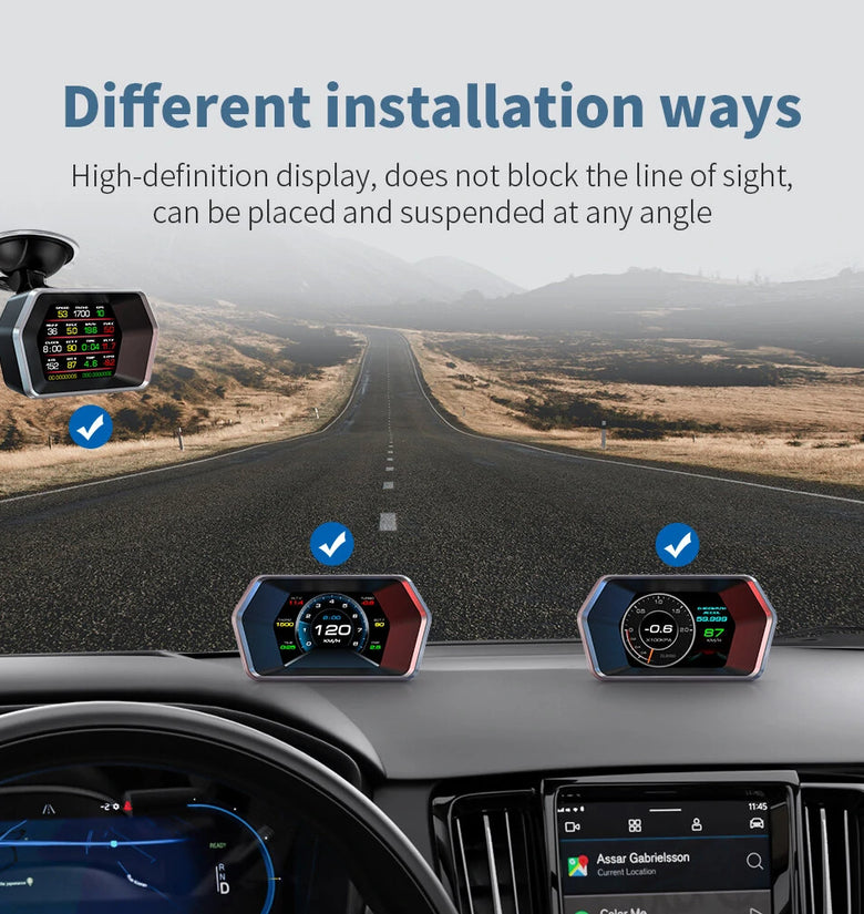 1. HUD display screen: The product features a high-definition display screen that ensures superior visual quality. This attribute can be highlighted by displaying images and videos showcasing the product's vibrant and sharp visual output.