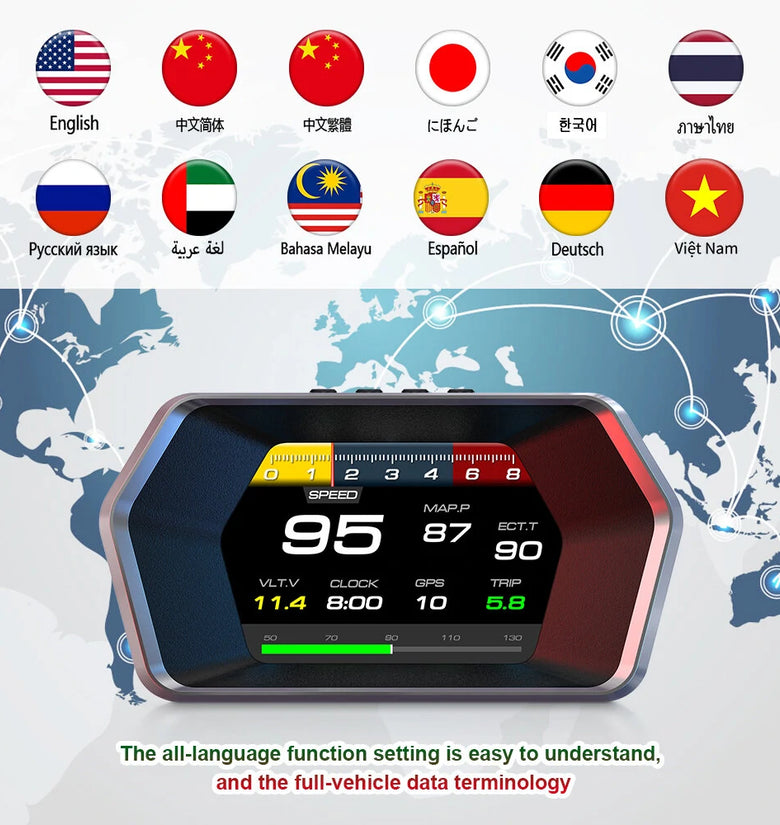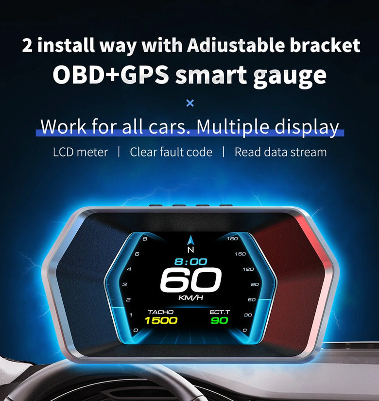 • Car HUD Gauge Head Up Display OBD2 GPS Dual System On-board Computer Car Digital Speedometer Alarm