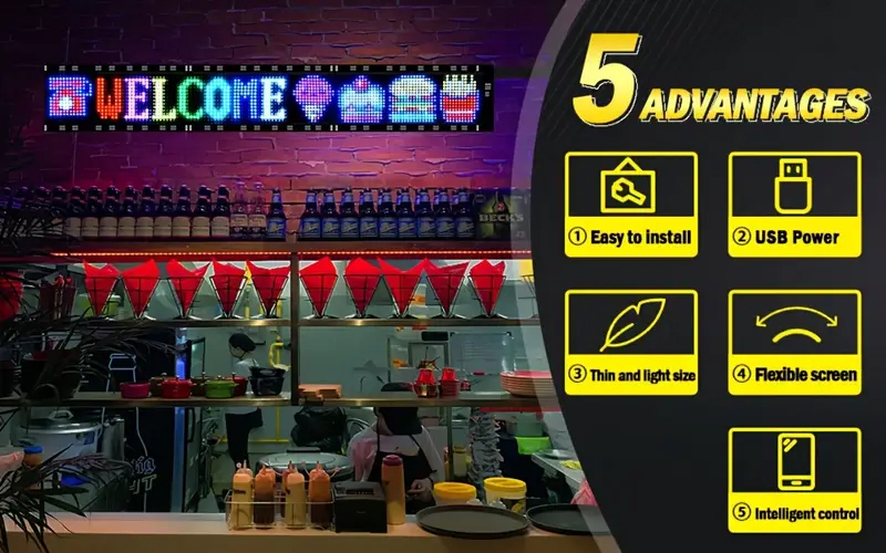 - Flexible Design: The flexible construction of this display allows it to bend and shape into diverse forms. This adaptability makes it an excellent choice for various installations, from retail environments to creative personal spaces, enabling innovative and eye-catching setups.