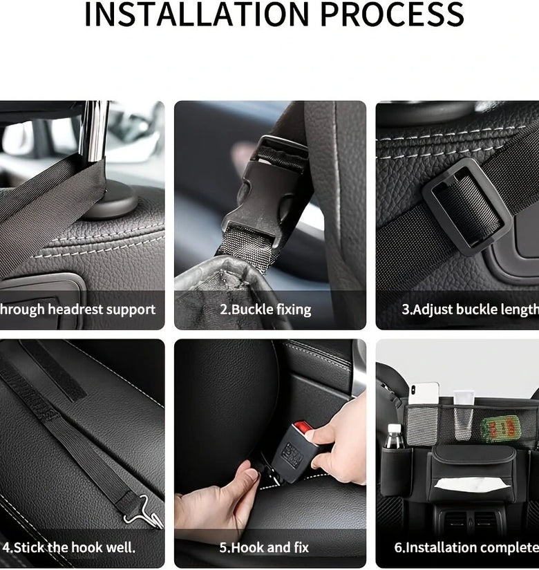 Easy installation: The storage bag can be easily attached to the back of the car seat with adjustable straps, no additional tools required.