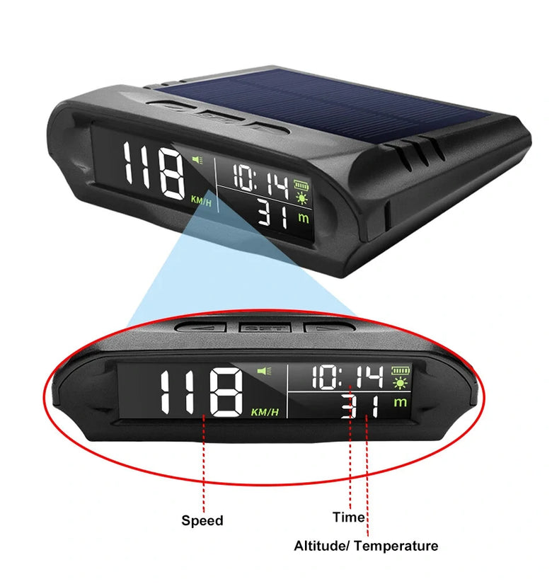1.GPS head-up display supports 2 power supply modes, solar energy and USB charging, so it accompanies every journey without power failure.