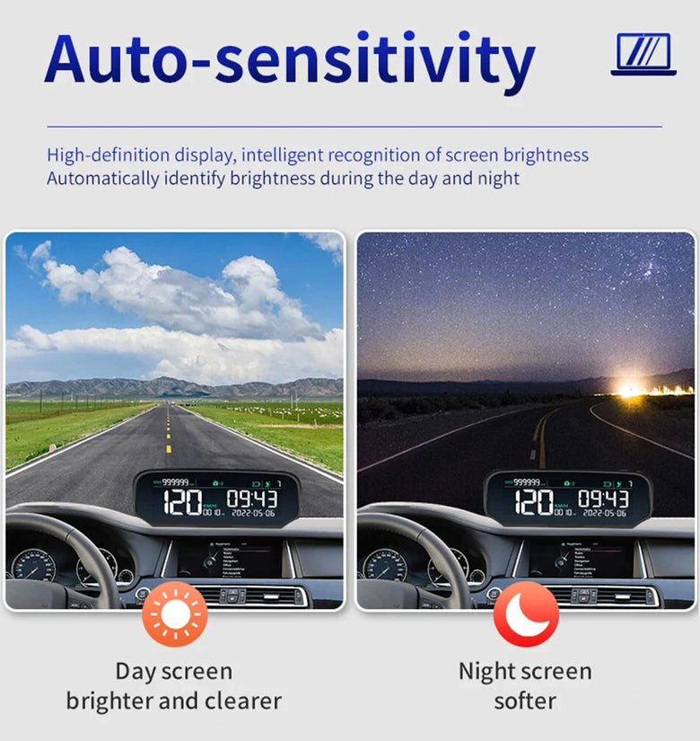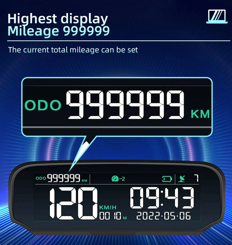 • Car Solar GPS Head Up Display Wireless Speedometer Display Speed Time Date Auto Adjust Screen Brightness Car Clock