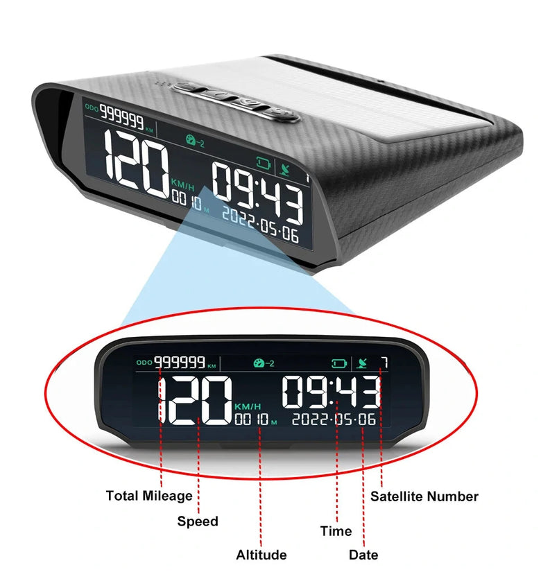 Car Solar GPS Head Up Display Wireless Speedometer Display Speed Time Date Auto Adjust Screen Brightness Car Clock