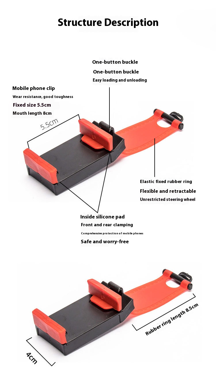 4. Elastic Fixed Loop Design: The elastic loop is designed to fit various steering wheel sizes without impeding installation. This feature allows you to keep your phone within easy view while driving, enhancing safety and convenience.