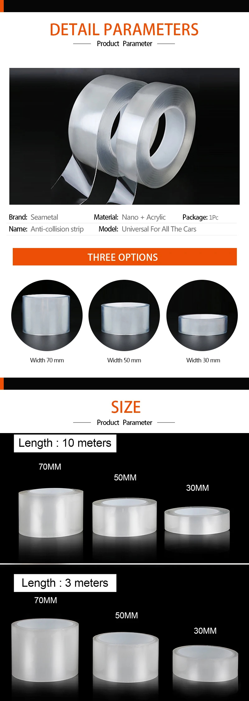 - Versatile Fit: Available in a range of widths (70mm, 50mm, and 30mm) and with a length of 3 meters, it can be easily tailored to fit various parts of your vehicle, ensuring comprehensive coverage.
