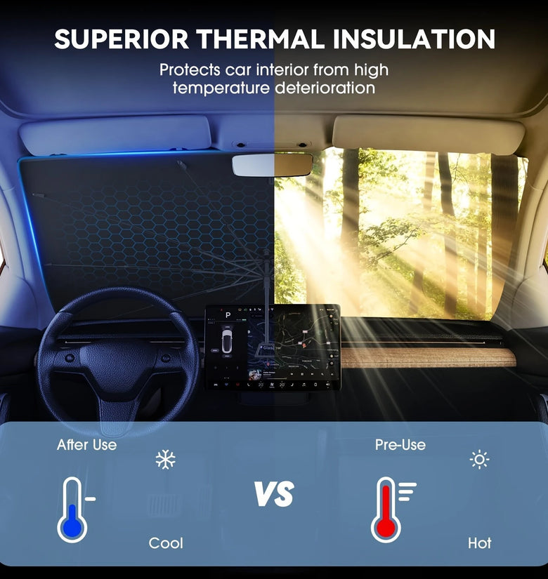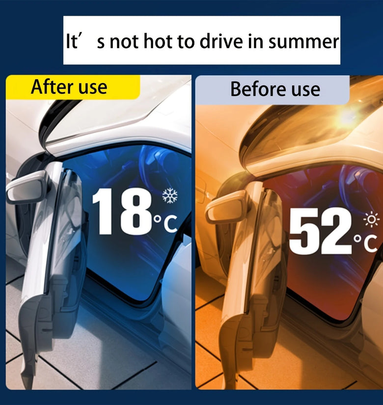 2. Innovative Cooling Design: Equipped with color coating refrigeration technology, this sunshade can drop the internal car temperature by up to 34°C (94°F), ensuring a comfortable environment as soon as you step in.