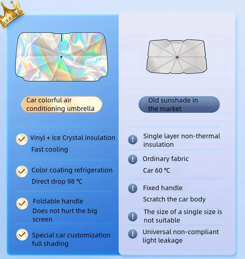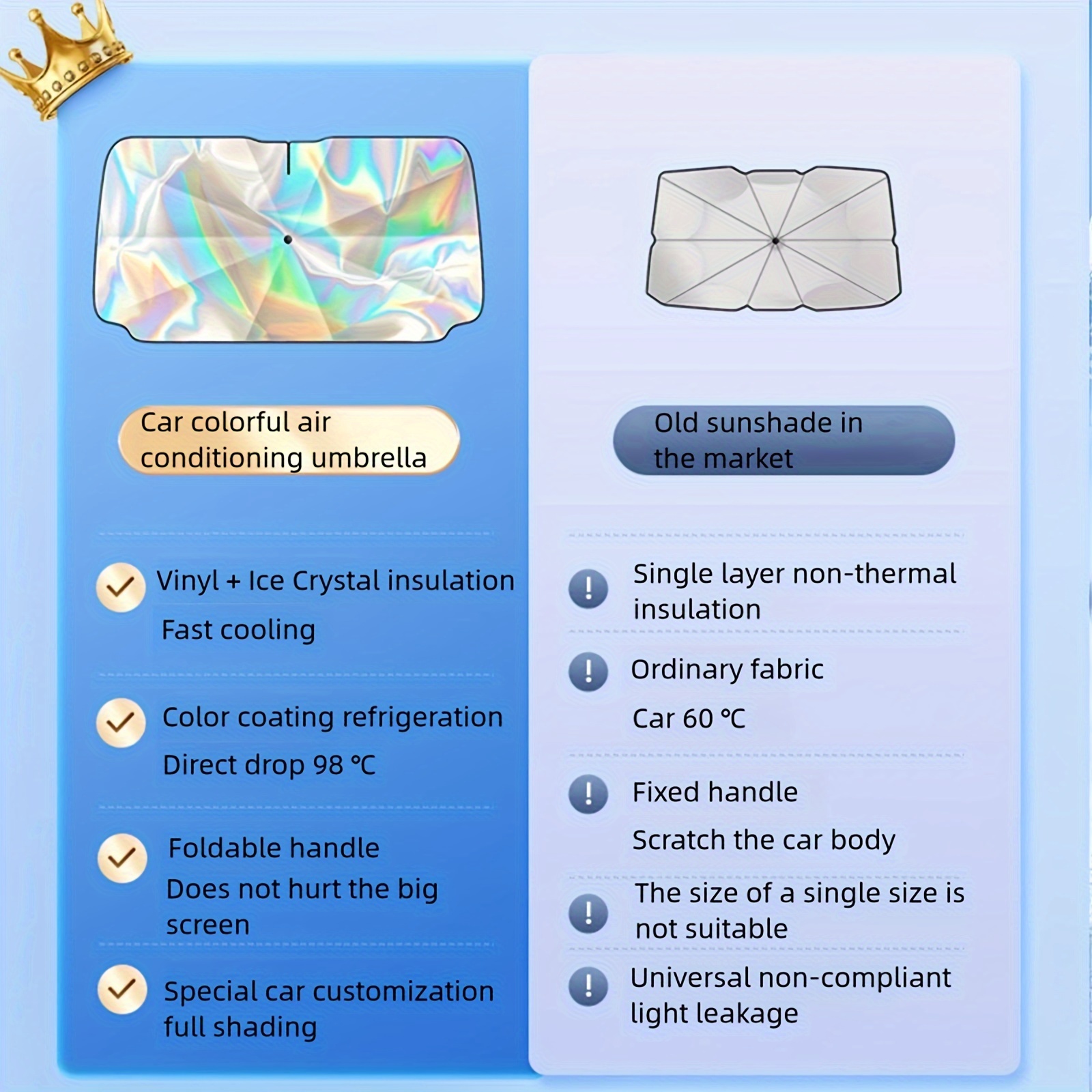 1. Superior Insulation: The sunshade utilizes a vinyl and ice crystal material that effectively reduces the internal temperature of the car. By reflecting 98% of direct sunlight, it keeps your car cool, even on the hottest days.