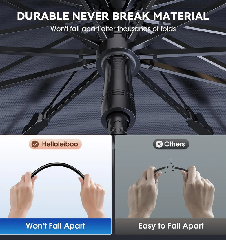 5. Sturdy Construction: Built with steel ribs, the frame is designed to withstand numerous folds without breaking, offering reliable performance and protection over extended use. It also provides a stable structure that won’t collapse easily.