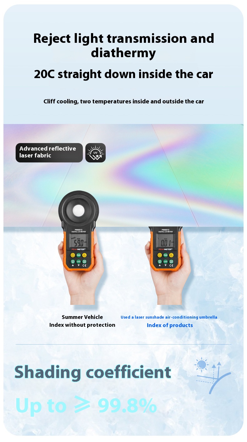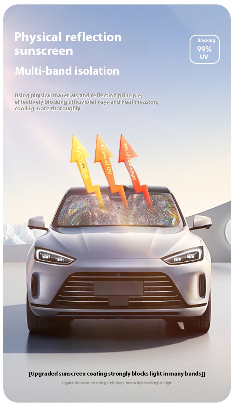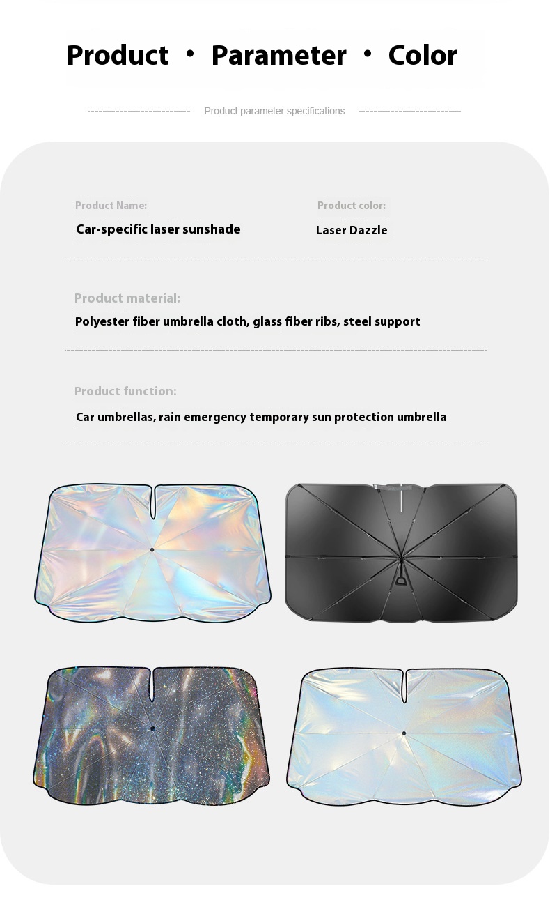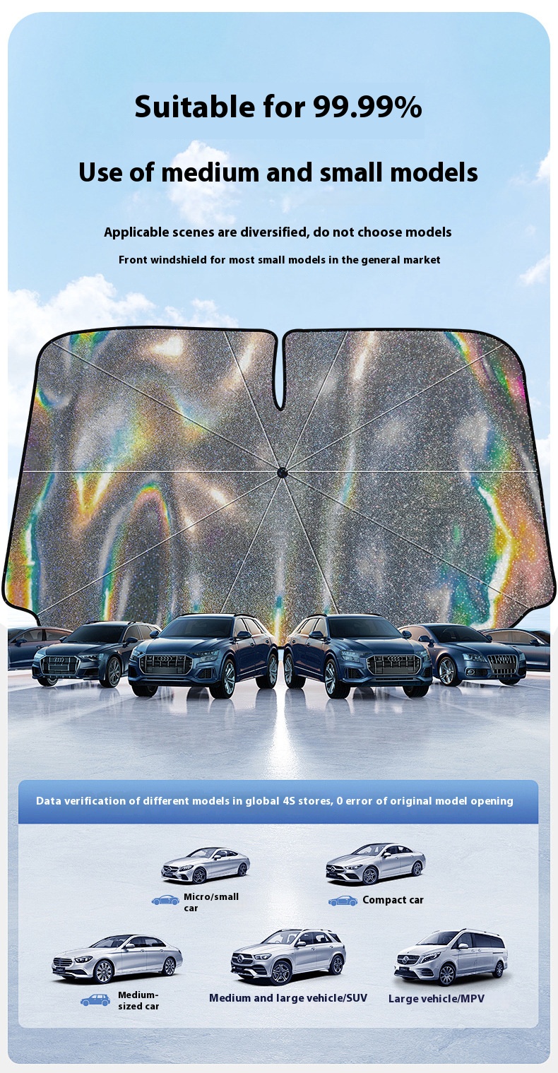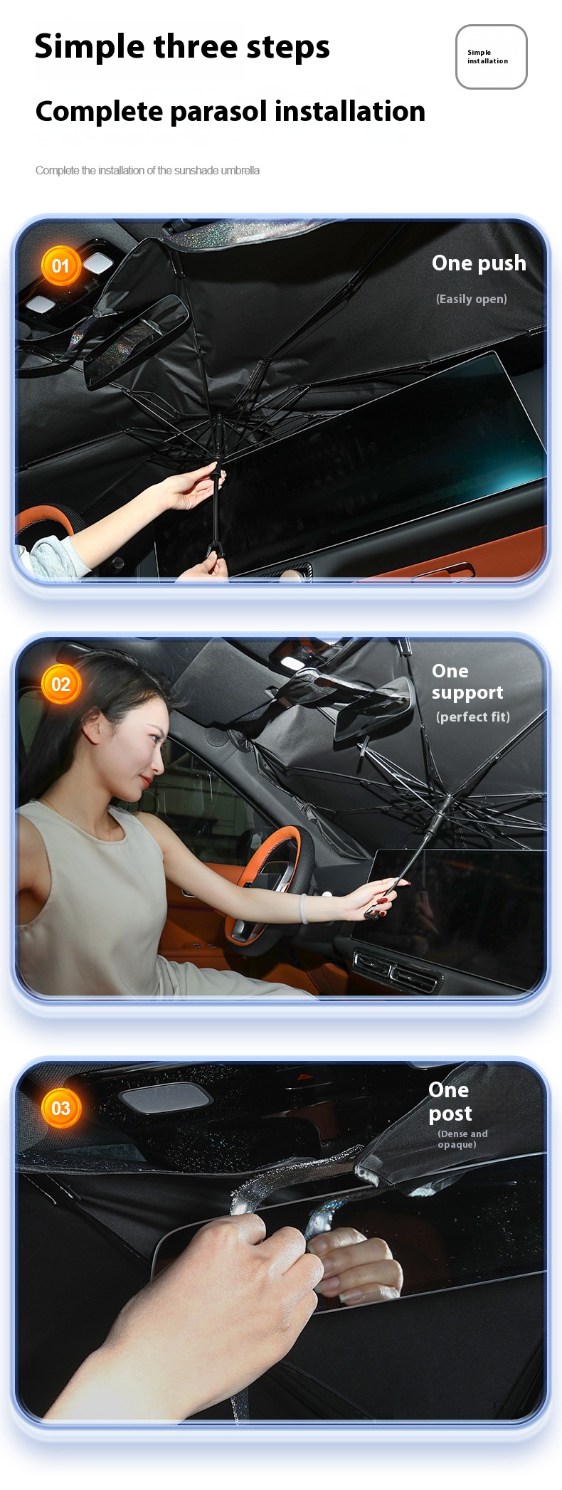 1. Superior Heat Reduction: Utilizing advanced materials such as aluminum reflective coating and high-density polymer fibers, this sunshade umbrella efficiently lowers the interior temperature by up to 20°C, ensuring a cool and comfortable driving environment.