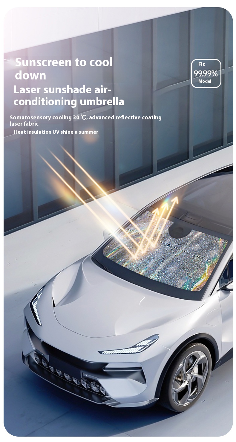 • Chameleon Foldable Car Front Windshield Sunshade Umbrella UV-Reflective Laser Car Sunshade Cover Colorful Heat Insulation Silver Gel Windscreen Car Sunscreen with 360 Rotatable Handle
