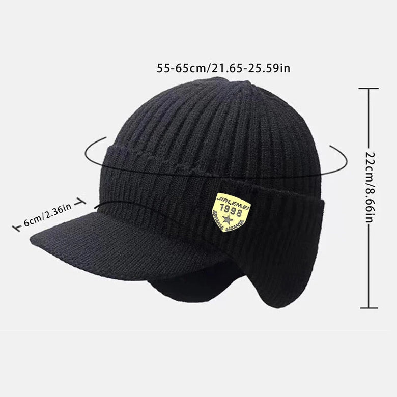• Collrown Men Winter Knitted Hat Outdoor Cycling Ear Protection Warmth Peaked Cap Riding Thick Earmuffs Beanie Hats