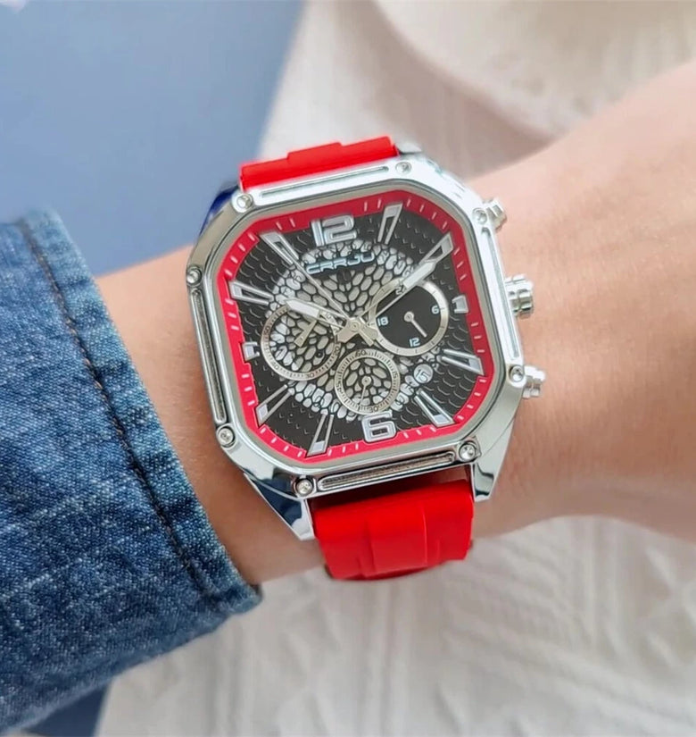 • CRRJU Men's Business Quartz Watch Silicone Strap Waterproof Sport Wristwatch with Automatic Date Casual Design and Watch Box