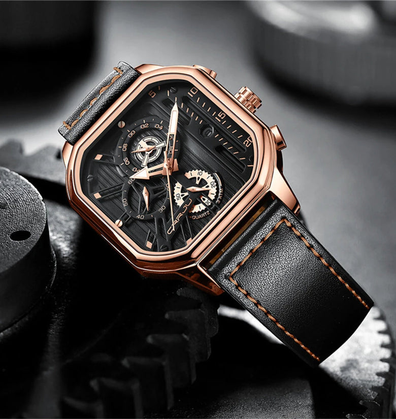 • CRRJU Men's Luminous Waterproof Sports Watch Square Dial Chronograph Business Casual Quartz Wristwatches
