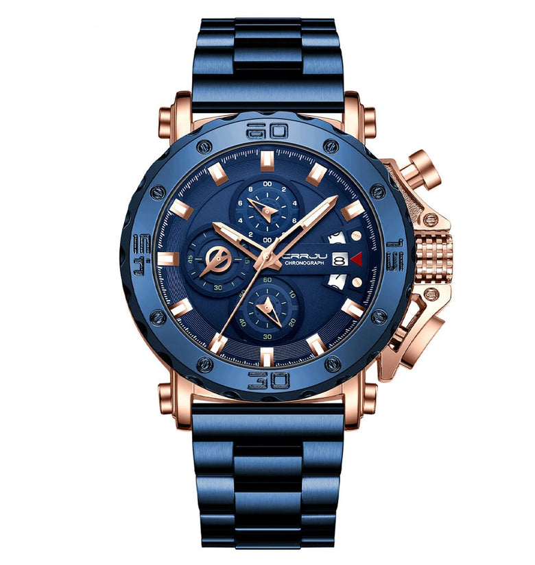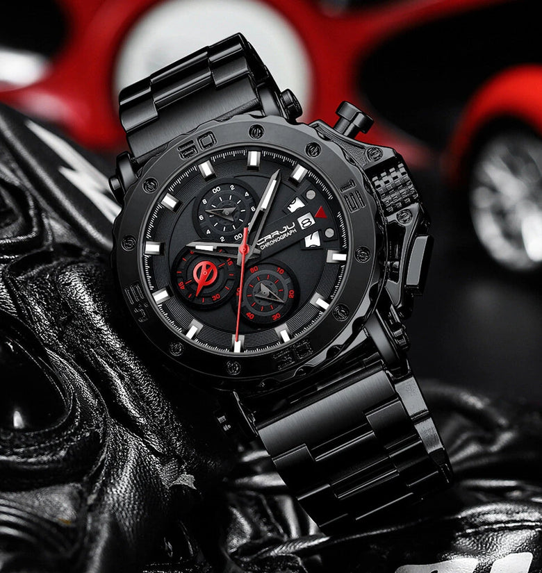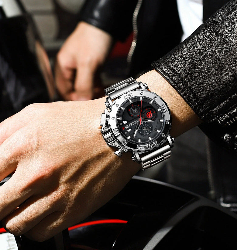 5. Precision Movement:Features a high beats quartz movement with a chronograph and date window for accurate timekeeping.
