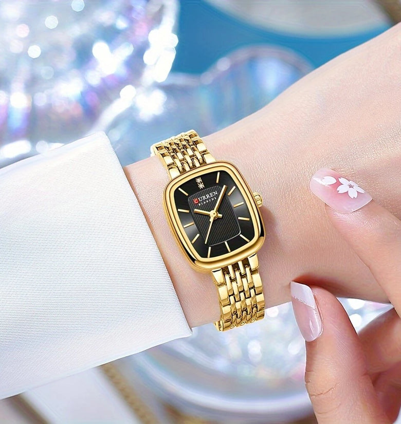 • CURREN Fashion Rhinestone Deco Stainless Steel Strap Square Quartz Watch Waterproof Casual Business Women's Wristwatch
