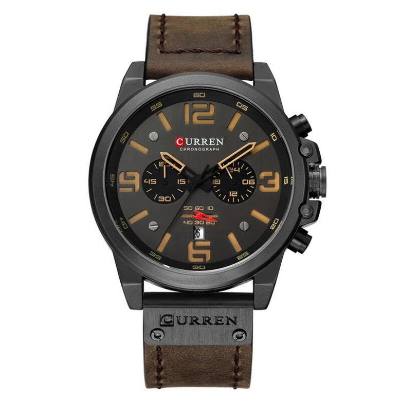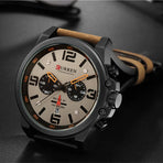 CURREN Men Sport Watch Leather Strap Quartz Watch 30M Waterproof Male Wrist Watch Multi-function Chronograph Watch