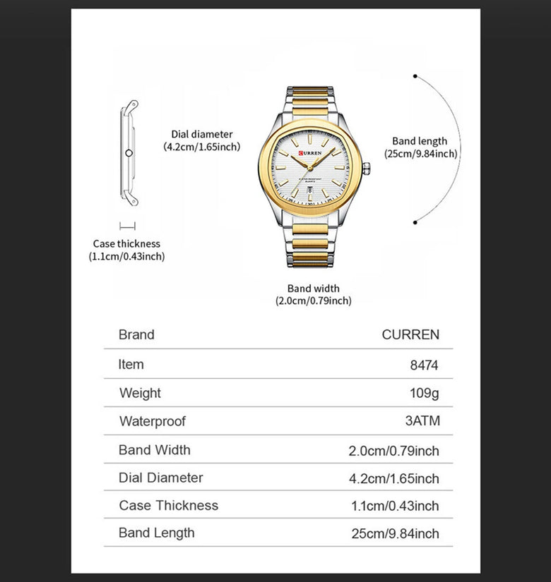 • CURREN Men's Quartz Watch Waterproof Stainless Steel Calendar Wristwatch Business Casual Design with Watch Box Stylish
