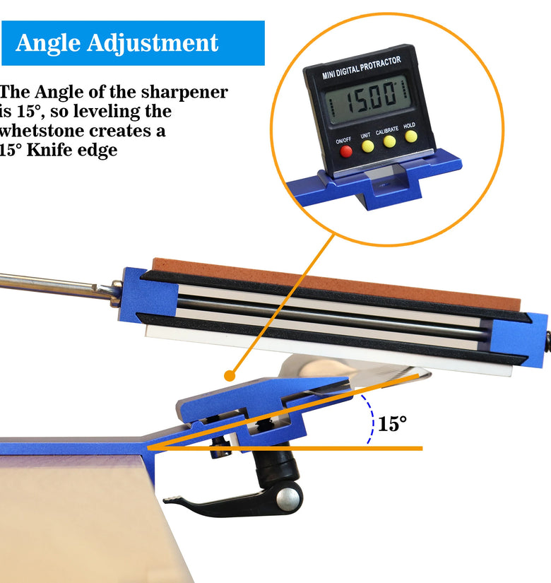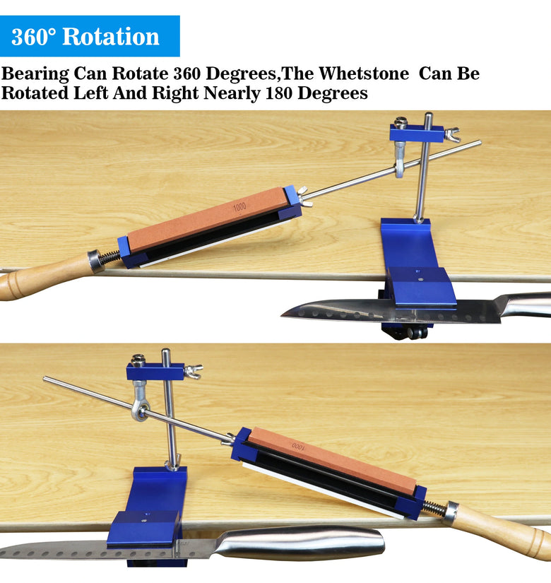 The sharpening stone can be rotated about 180 degrees, and there is no need to remove the sharpening rod when changing sides.