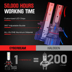 • CYBERBEAM A900-C3 H4 / H7 / H11 / 9005 / 9006 Pair 50W Car LED Headlights 10000LM LED Bulbs 6500K White Light LED Headlamps IP68 Waterproof