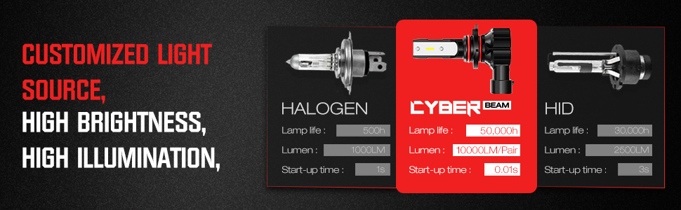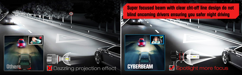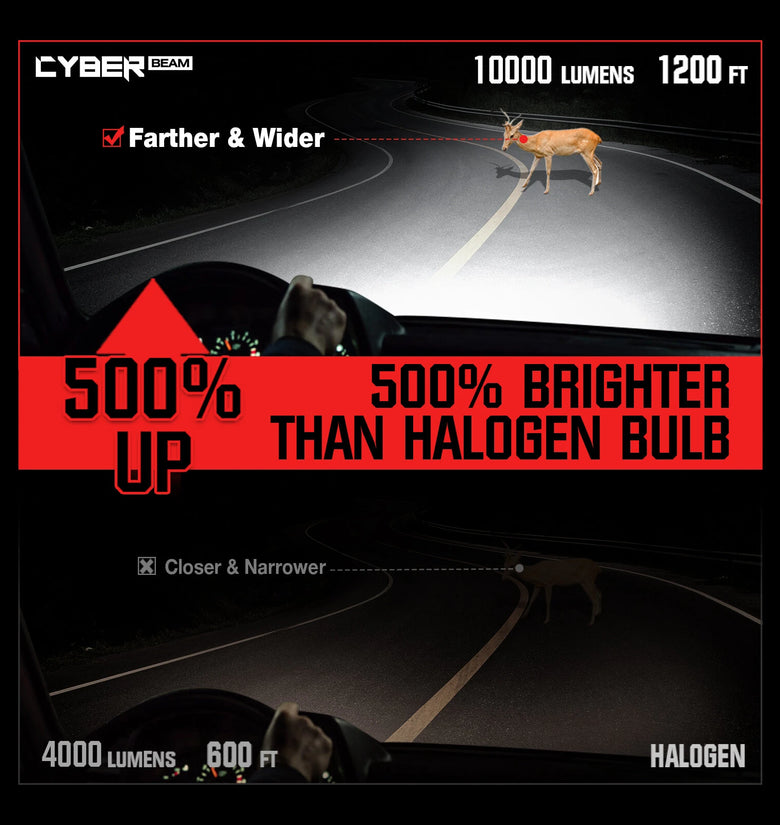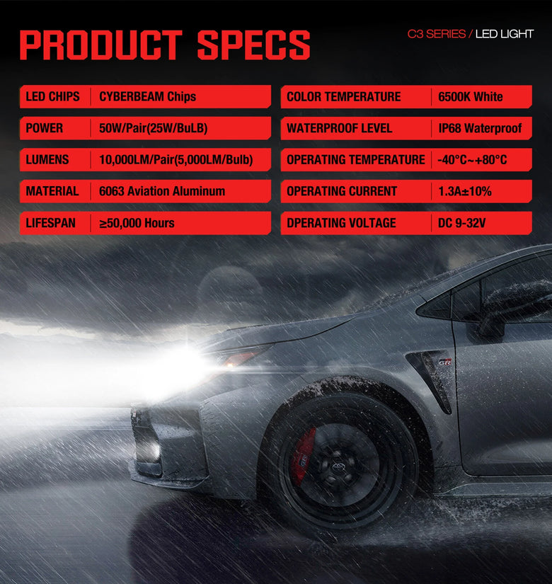 - Superior Brightness: Emitting a powerful 10,000 lumens per pair, the CYBERBEAM C3 series ensures your path is brightly illuminated for maximum visibility. The 6500K bright white light mimics daylight, reducing eye strain and enhancing road safety.