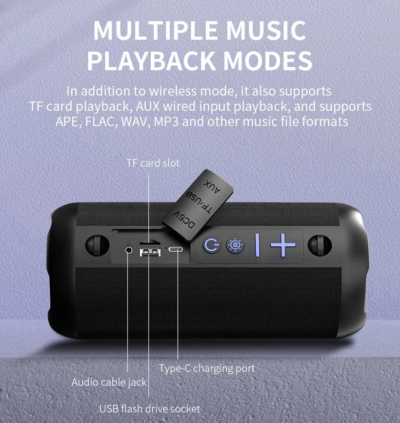 7. Multiple Playback Mode: The speaker supports AUX, TF Card, and U Disk modes, allowing you to play music in your preferred method.