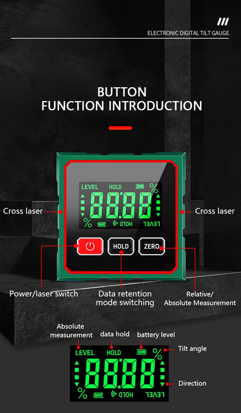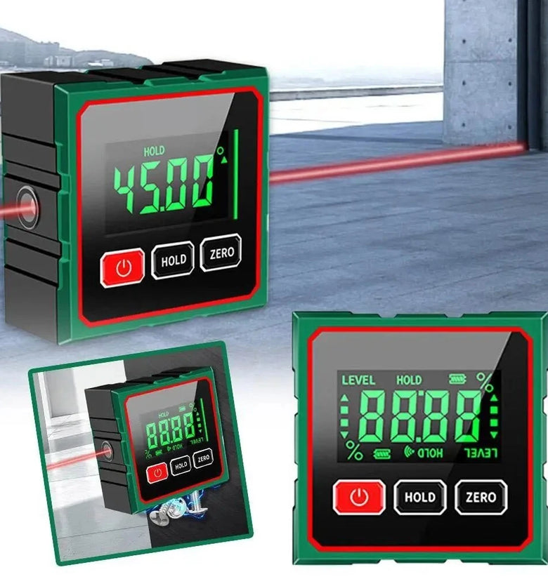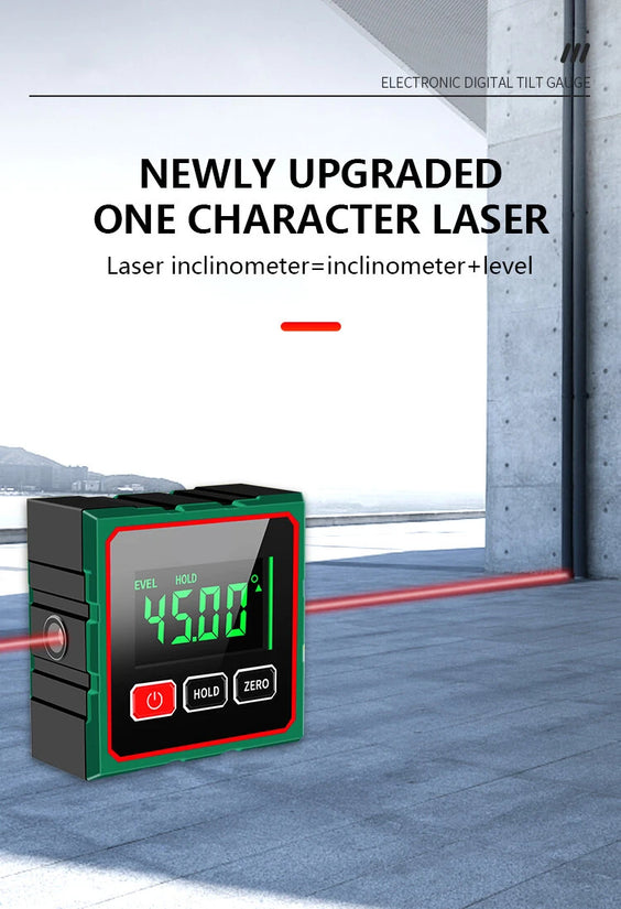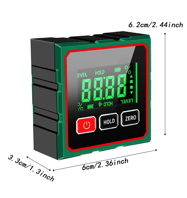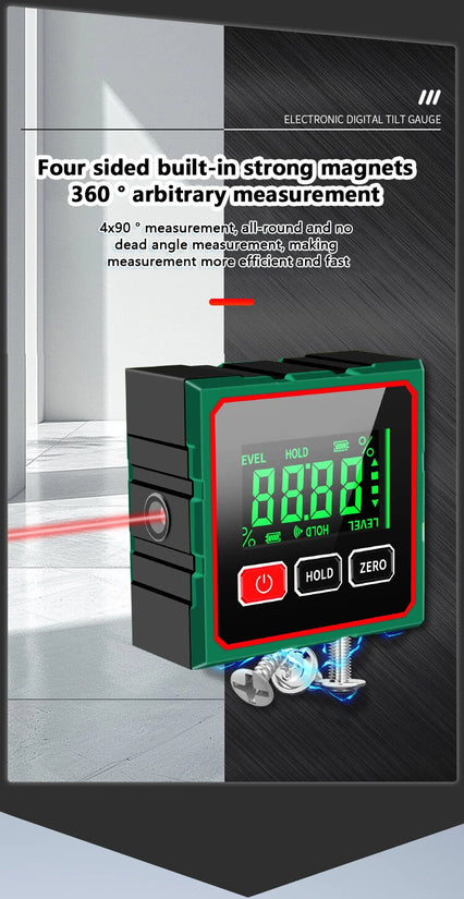 This inclinometer features an automatic digit flip, ensuring you can read the display from any angle without the need to manually adjust the device.