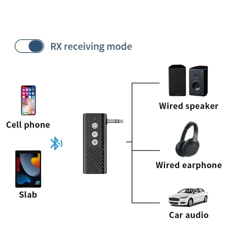 1. Dual Function: Serves as both a bluetooth transmitter and receiver, offering a wide range of versatility to suit a variety of audio devices.