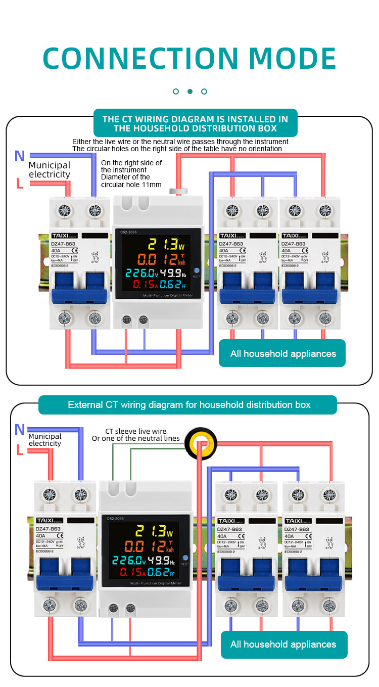 5. Built-in andExternal CT Compatibility: Compatible with multiple wiring modes for household distribution boxes and appliances.