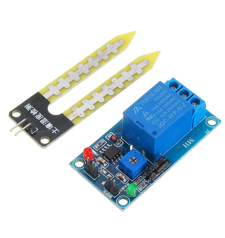 Sensor for detecting moisture in the soil; Module is the blue potentiometer to adjust the threshold for soil moisture , clockwise adjustment, control humidity will be bigger, smaller counter-clockwise; Due to the module with delay function in the regulation of humidity values, adjusted once every 5-8 seconds to wait around to see if changes in the relay, the green LED lights also have a corresponding change until transferred to meet the requirement. Product wiring information , refer to the picture below.