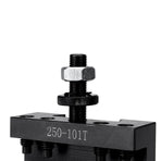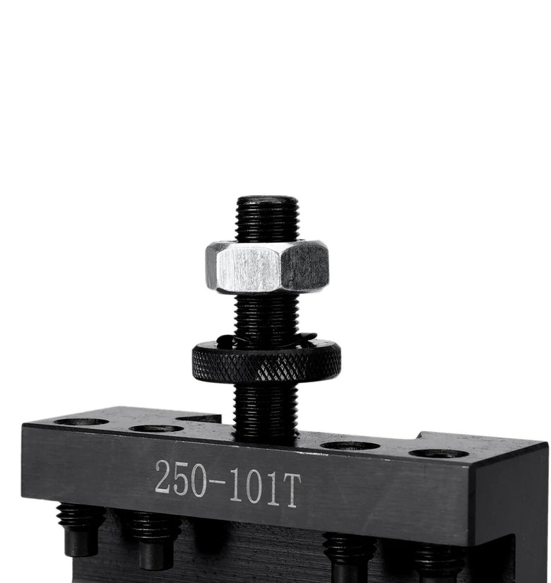 Advanced Quick-Change Tool Post System: The 250-101T quick-change tool post system is an indispensable accessory for standard lathes. It includes a sturdy tool post and various compatible tool holders, designed to handle a wide array of machining tasks like cylindrical facing, end facing, grooving, drilling, reaming, and boring. The dovetail slot installation allows for rapid tool changes, significantly boosting productivity across diverse machining processes.High Precision and Strength: The dovetail mounting mechanism of the 250-101T tool holder ensures exceptional precision and strength during operations. It provides significant improvements over traditional square turrets by enabling quick and precise tool mounting outside the machine tool. The secure and accurate positioning contributes to better workmanship and efficient machining, making it an excellent replacement for conventional square turrets.Broad Tool Bit Compatibility: The 250-101T tool holder is designed to accommodate a range of tool bit sizes, fitting bits from 3/16' to 1/2'. This flexibility makes it suitable for various machining needs, ensuring comprehensive coverage for different processes. Whether you need to perform intricate details or more substantial machining tasks, this tool holder adapts seamlessly.Robust and Lightweight Construction: Despite its robust construction, the 250-101T tool holder is lightweight at just 0.40 kg. This optimal balance of strength and weight makes it ideal for both light and more intensive machining applications. The construction ensures reliable performance while maintaining easy handling and installation.Effortless Setup and Operation: The ergonomic design of the 250-101T quick-change tool post system facilitates easy and swift tool changes, greatly reducing setup time and enhancing operational efficiency. Each component is designed for straightforward installation, and the comprehensive user manual provides clear instructions. This ensures that users can quickly and easily set up and operate the system, regardless of their technical expertise, thus optimizing workflow and productivity.Specifications:Model: 250-101TA (in): 1B (in): 1/2C (in): 29/64D (in): 1-1/2Tool Bit Range (in): 3/16-1/2Weight (kg): 0.40Package Included:1 x 250-101T Tool Holder