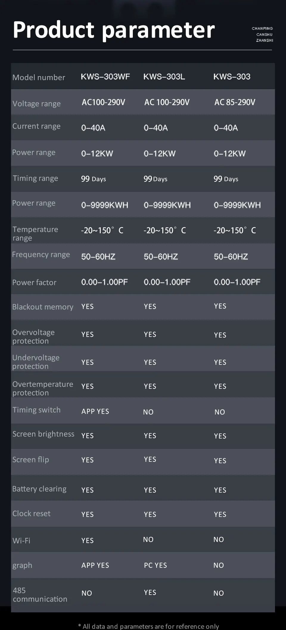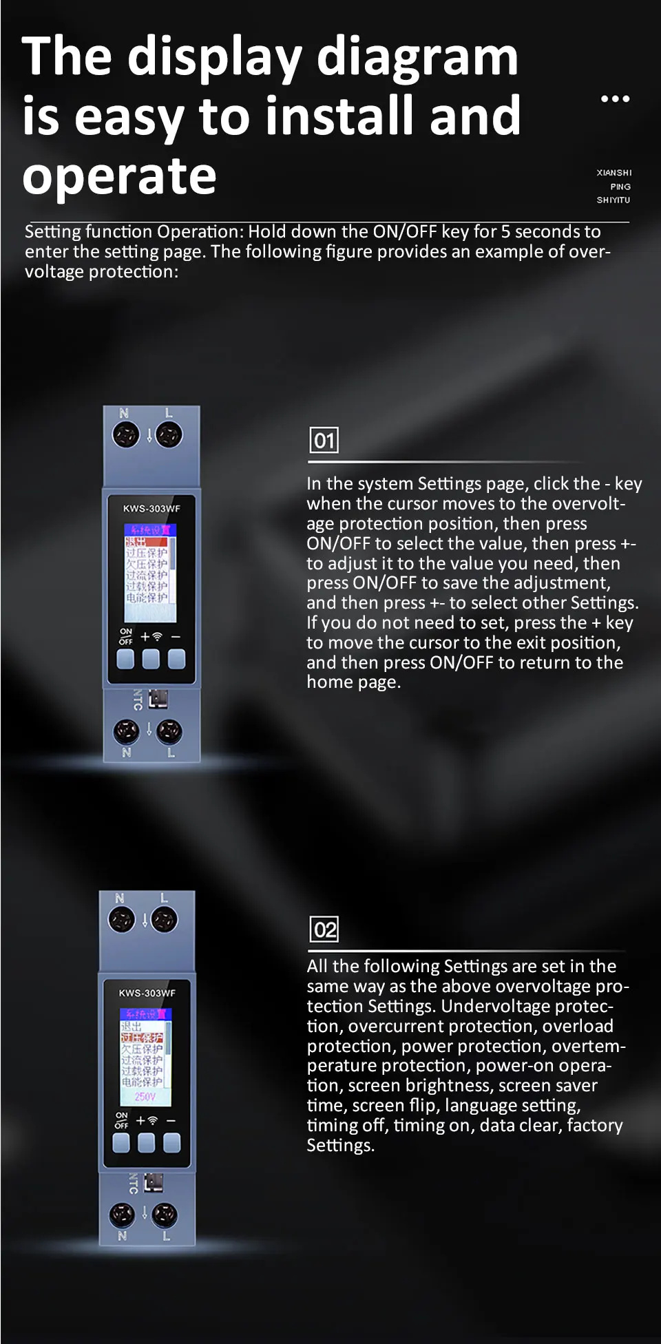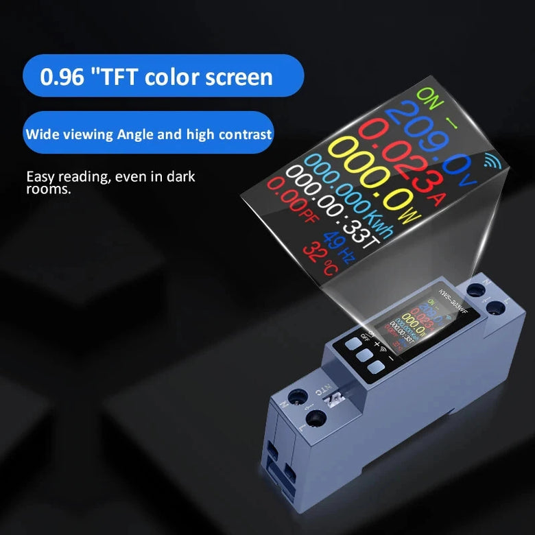 8-in-1 Digital Display: Shows voltage, current, power, frequency, power factor, active energy, timing, and other electrical parameters simultaneously for real-time monitoring.