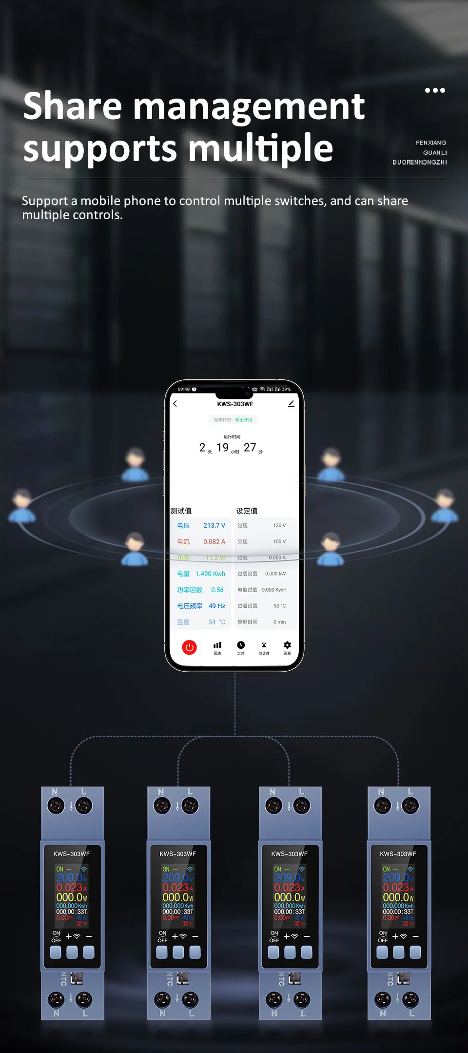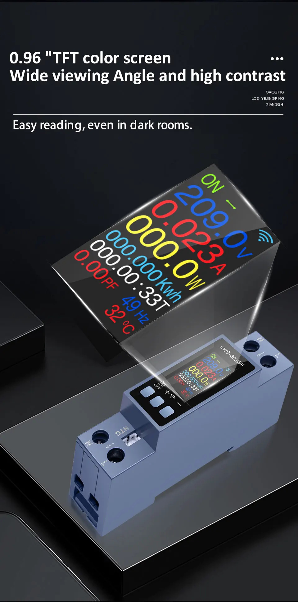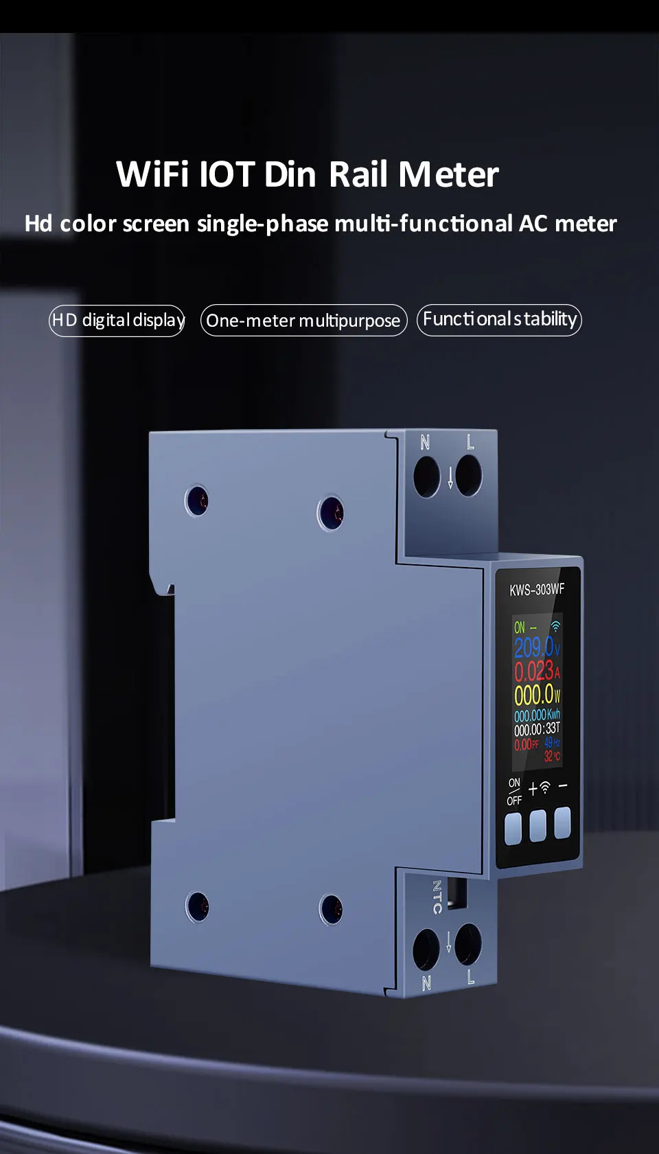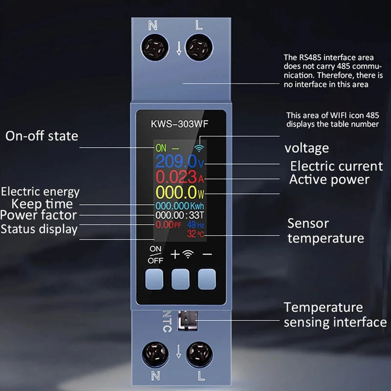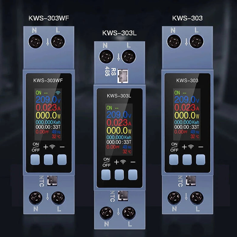 • Din Rail AC Monitor KWS-303WF/KWS-303L/KWS-303 8-in-1 100-290V 40A Power Factor Frequency KWH Meter WiFi Control