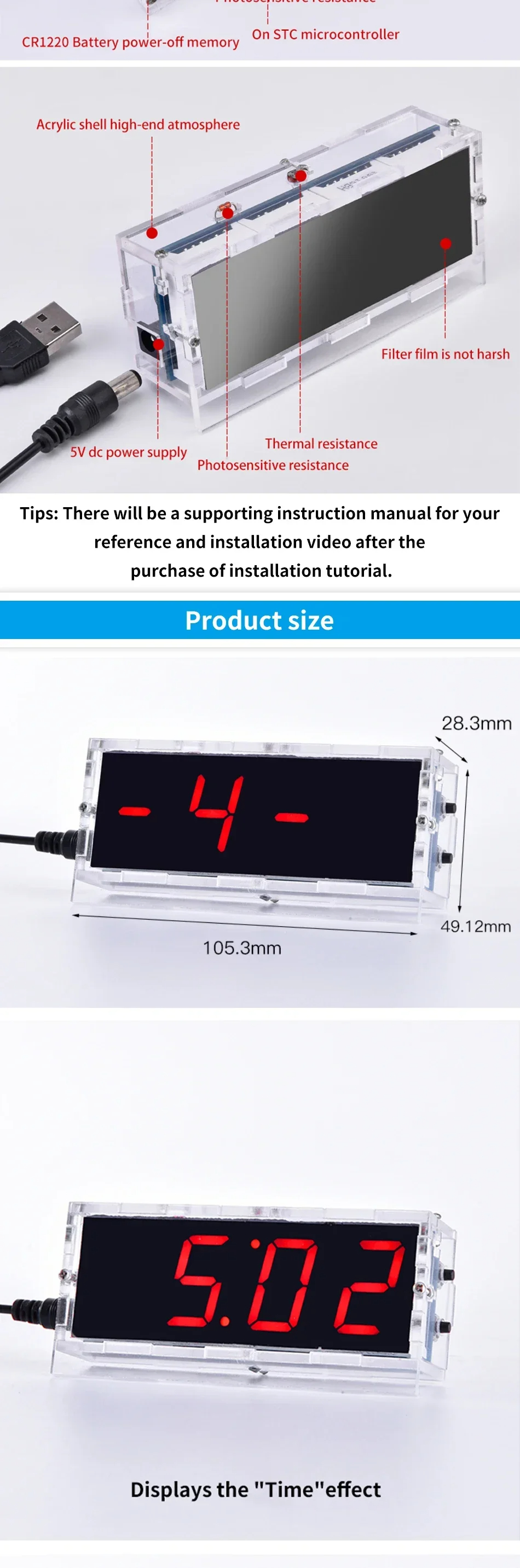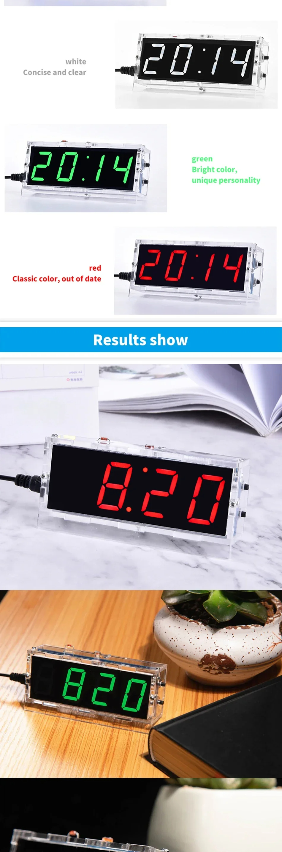 5. Transparent Protective Case: Includes a clear enclosure to safe the components while lending the clock a modern and sleek design.