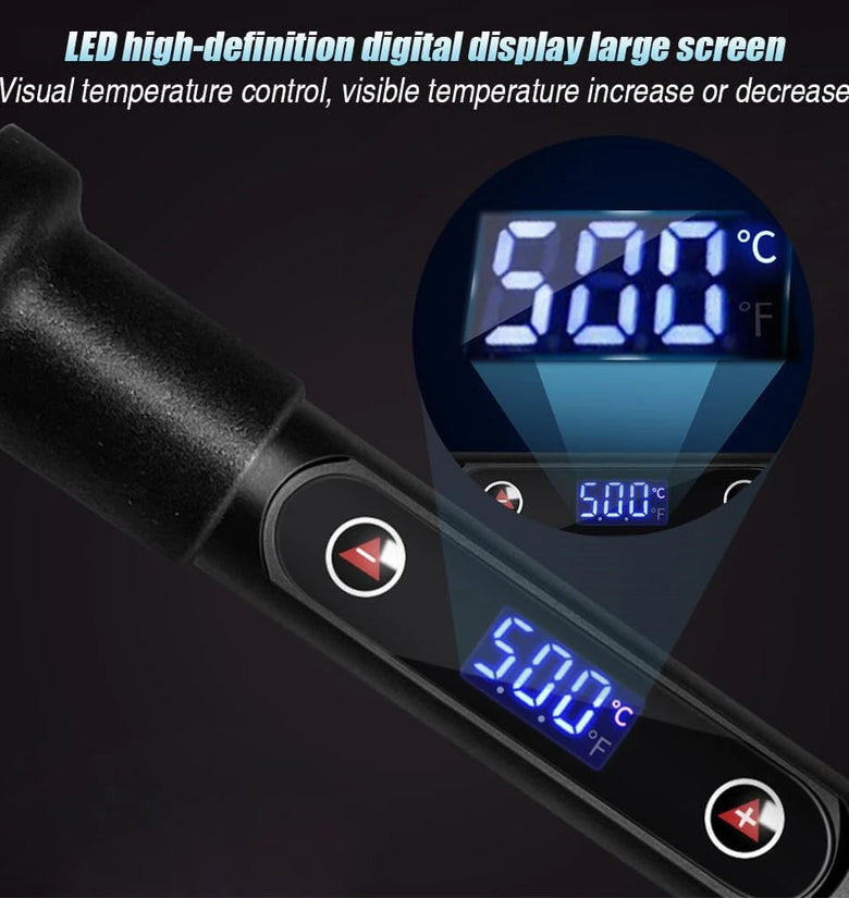 2.Adjustable Temperature Control: The soldering iron offers a wide temperature adjustment range from 180℃ to 500℃, making it versatile enough for different materials, including wood, leather, and finer details, to achieve the perfect temperature for each project.