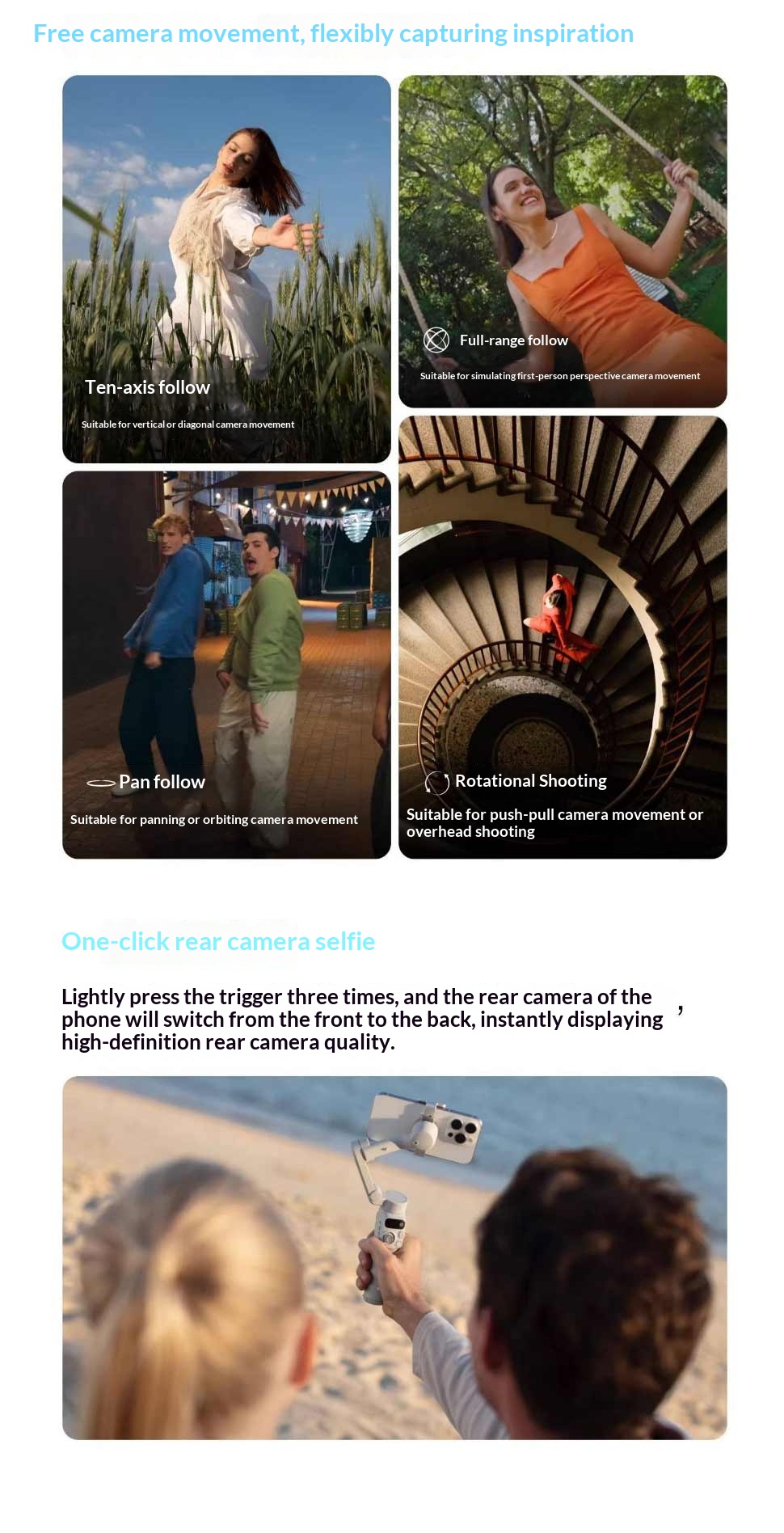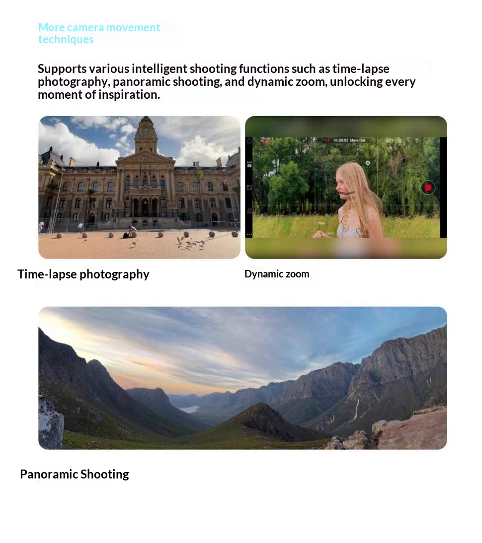 1. Advanced Tracking Technology: Equipped with Intelligent Follow 7.0, allowing precise tracking of subjects even in complex environments.